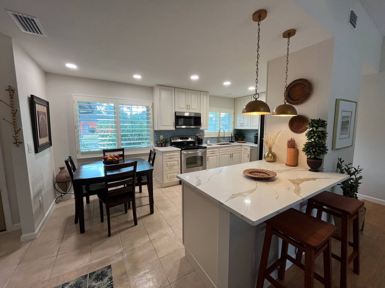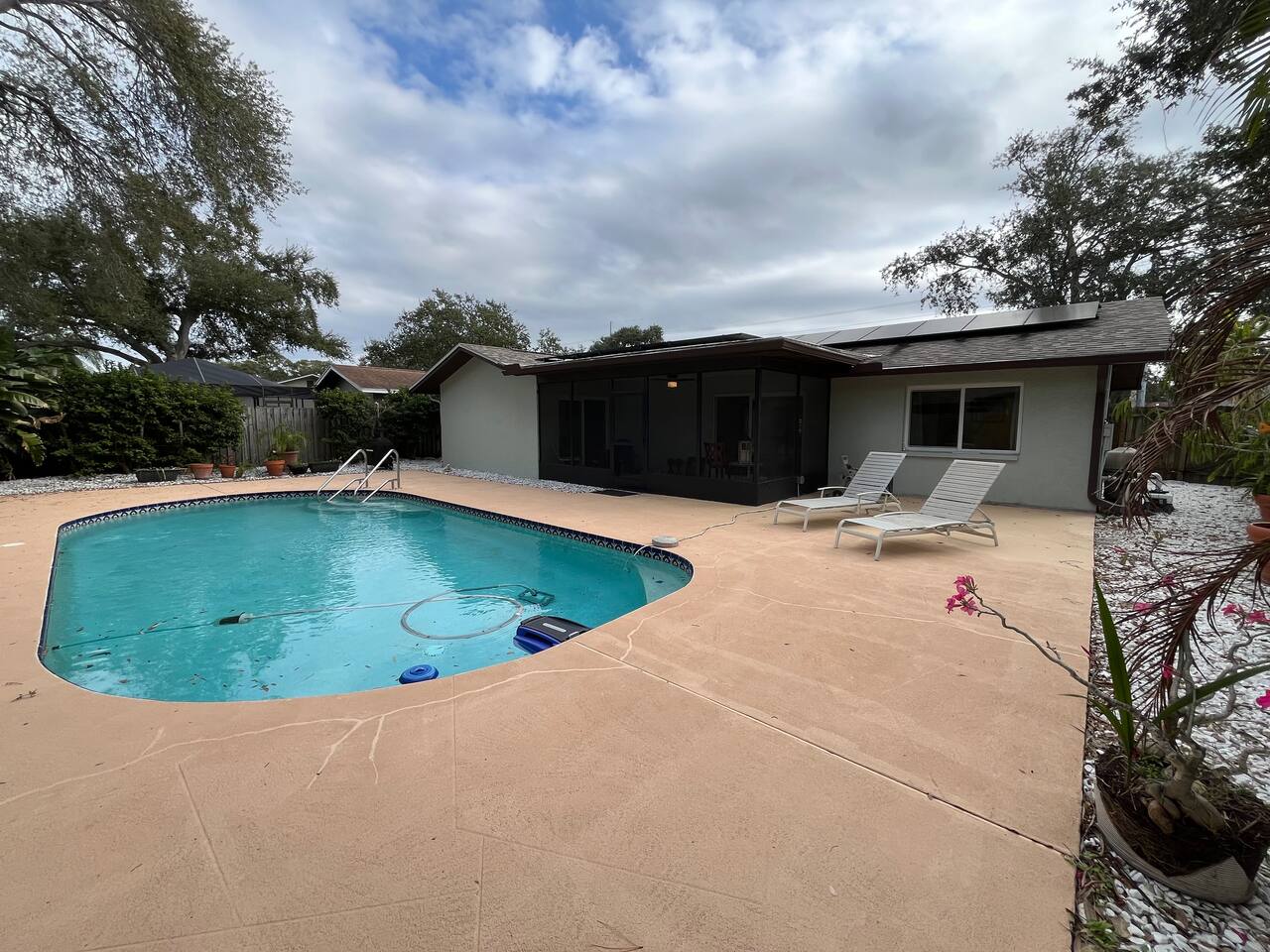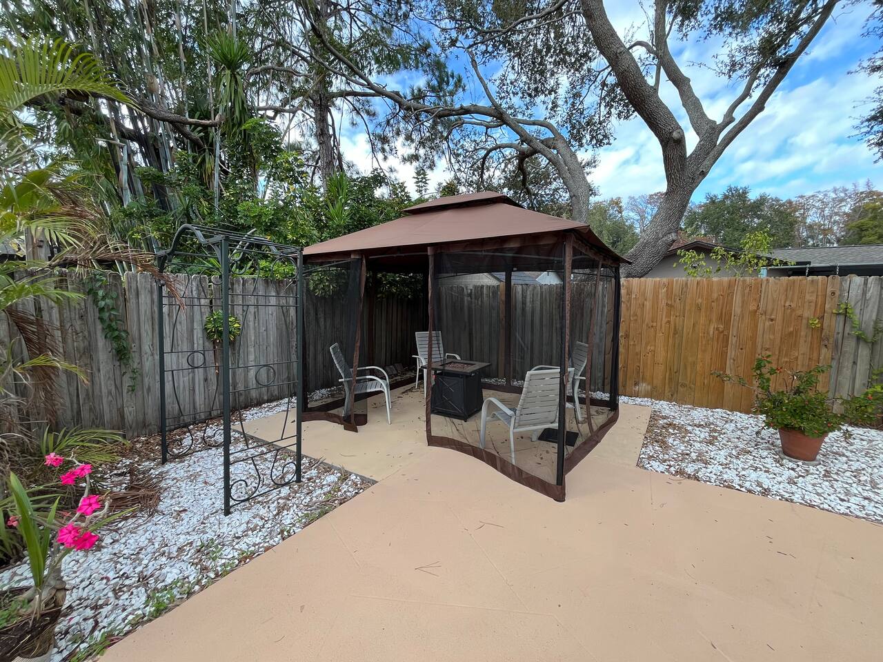 Welcome to Your Mediterranean-Inspired Clearwater Retreat Step into a relaxing escape designed for comfort, style, and memorable stays. This beautifully appointed 2-bedroom, 2-bath home blends Mediterranean charm with modern conveniences and is perfect for families, couples, remote workers, or snowbirds looking to enjoy Florida living just minutes from the coast. Outdoor Living at Its Best Your private backyard oasis features a sparkling pool, a covered gazebo, and a propane fire pit, creating the perfect setting for morning coffee, afternoon lounging, or evenings spent under the stars. Whether you’re unwinding after a beach day or enjoying a quiet night in, the outdoor space is designed to help you relax and recharge. Comfortable & Thoughtfully Designed Interior Inside, you’ll find warm Mediterranean-inspired finishes and an open, welcoming layout. Primary bedroom: Spacious and private, ideal for restful nights Guest bedroom: Two full-size beds plus a dedicated workspace/desk, perfect for families or remote work Two full bathrooms for added convenience The home is set up to feel inviting without sacrificing functionality. Perfect Location Located in a quiet Clearwater neighborhood, you’re just 15–20 minutes from Clearwater Beach, consistently ranked among the top beaches in the U.S. You’re also close to restaurants, shopping, golf courses, and local attractions—making it easy to explore or stay in and relax. Ideal for Every Type of Stay Whether you’re here for a weekend getaway, a longer beach vacation, or an extended stay, this home offers the privacy of a standalone residence with the amenities guests love. Book your stay and experience Clearwater in comfort, style, and total relaxation.