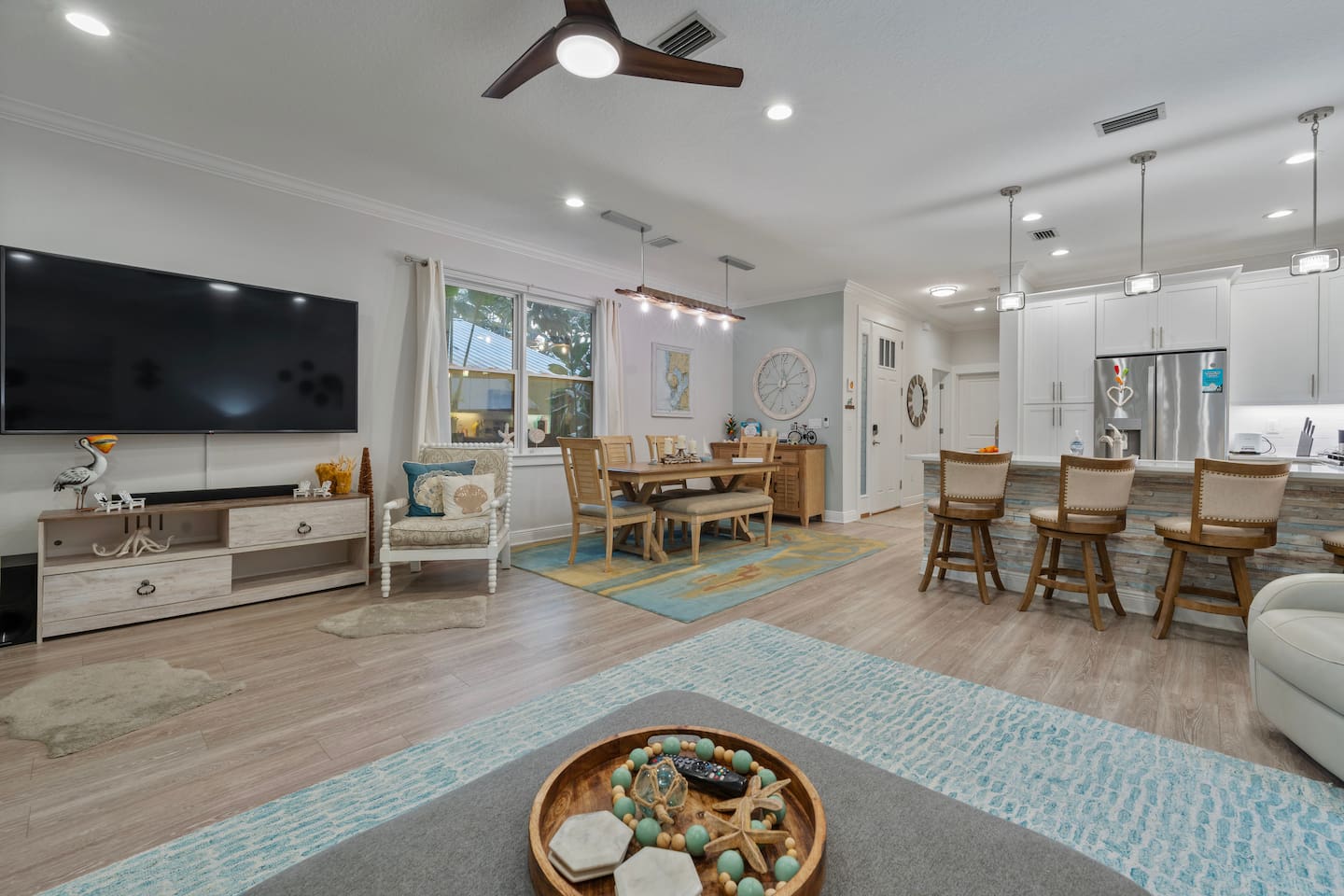 Enjoy a stylish stay at this modern 3-bed, 2.5-bath Dunedin townhome just a short walk from downtown. Minutes from Honeymoon Island, Clearwater Beach, and top restaurants, breweries, and shops. Featuring a spacious layout, fully equipped kitchen, and coastal-inspired design, this home is perfect for families, couples, or snowbirds looking to experience the best of Florida’s Gulf Coast. Dunedin’s favorite stay! (Under new management now-previously 5-stars, 70 reviews)