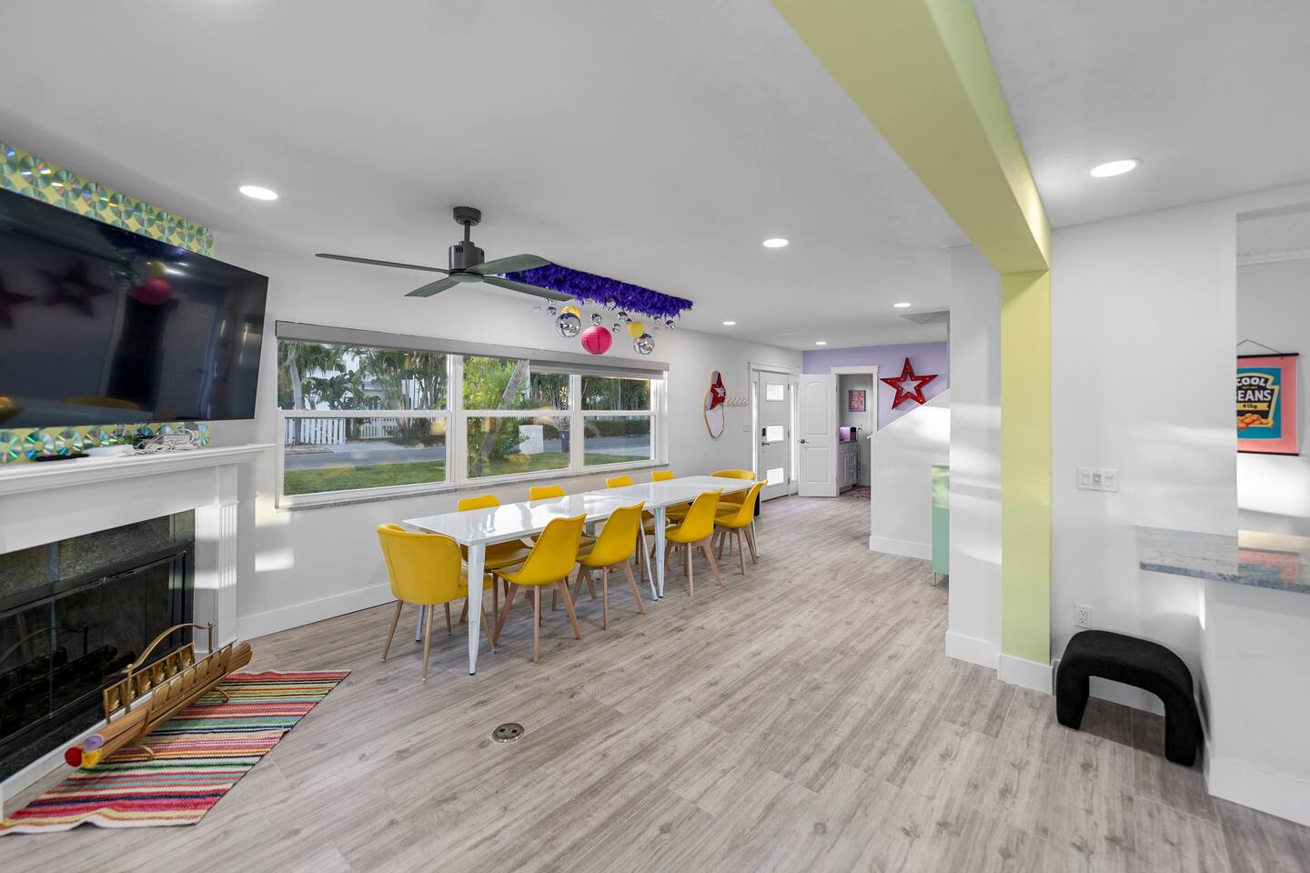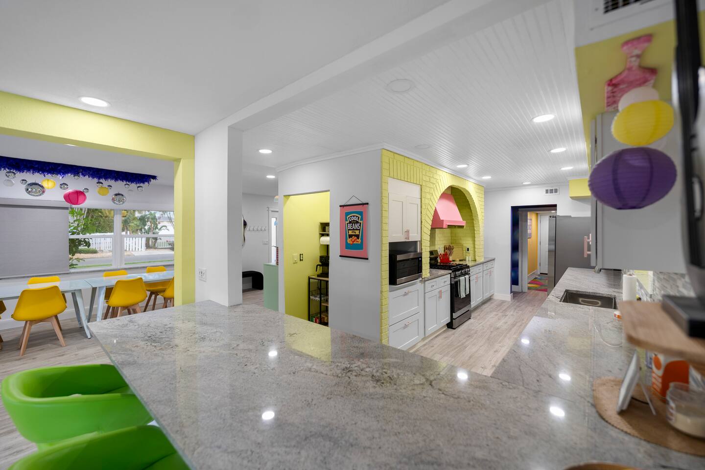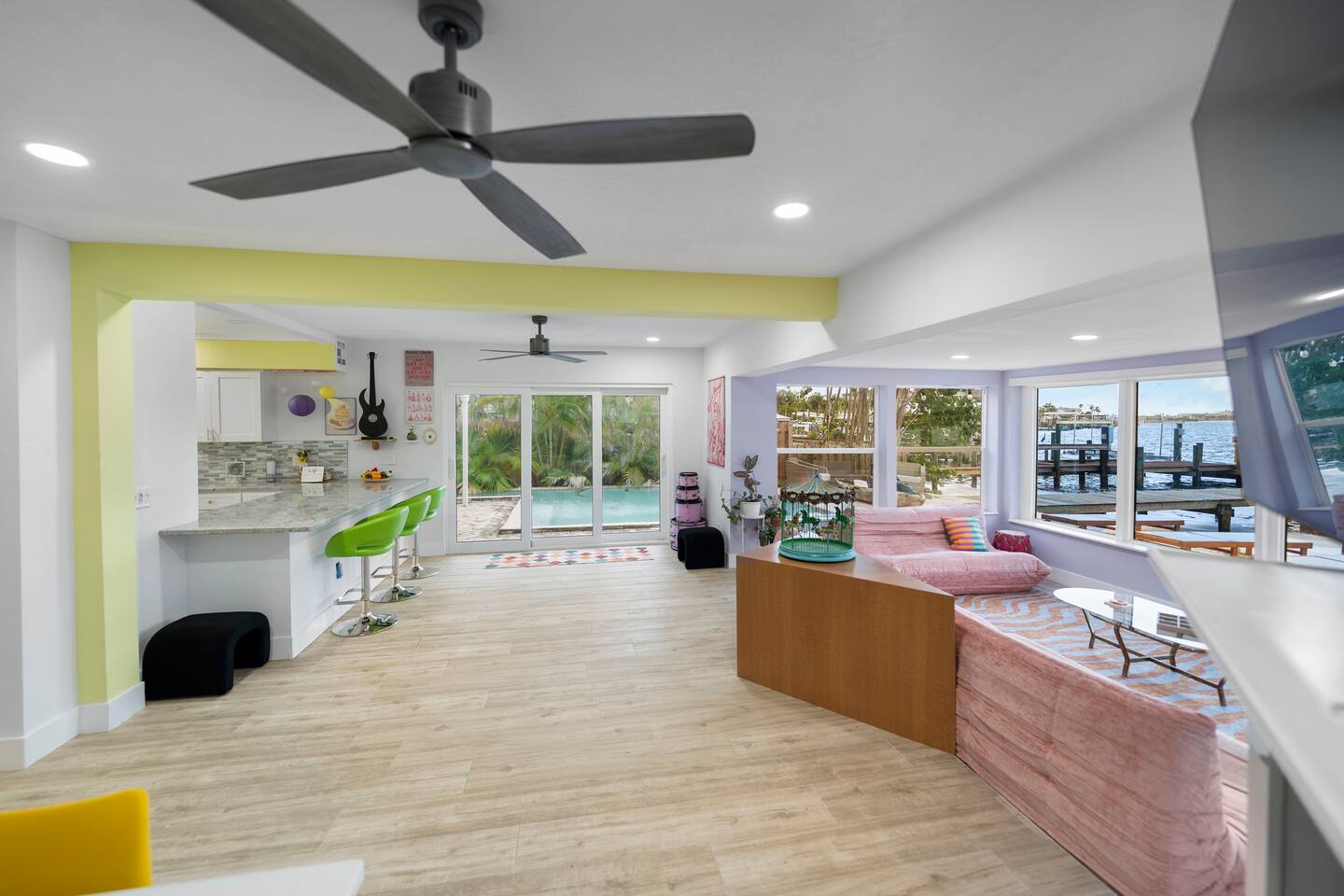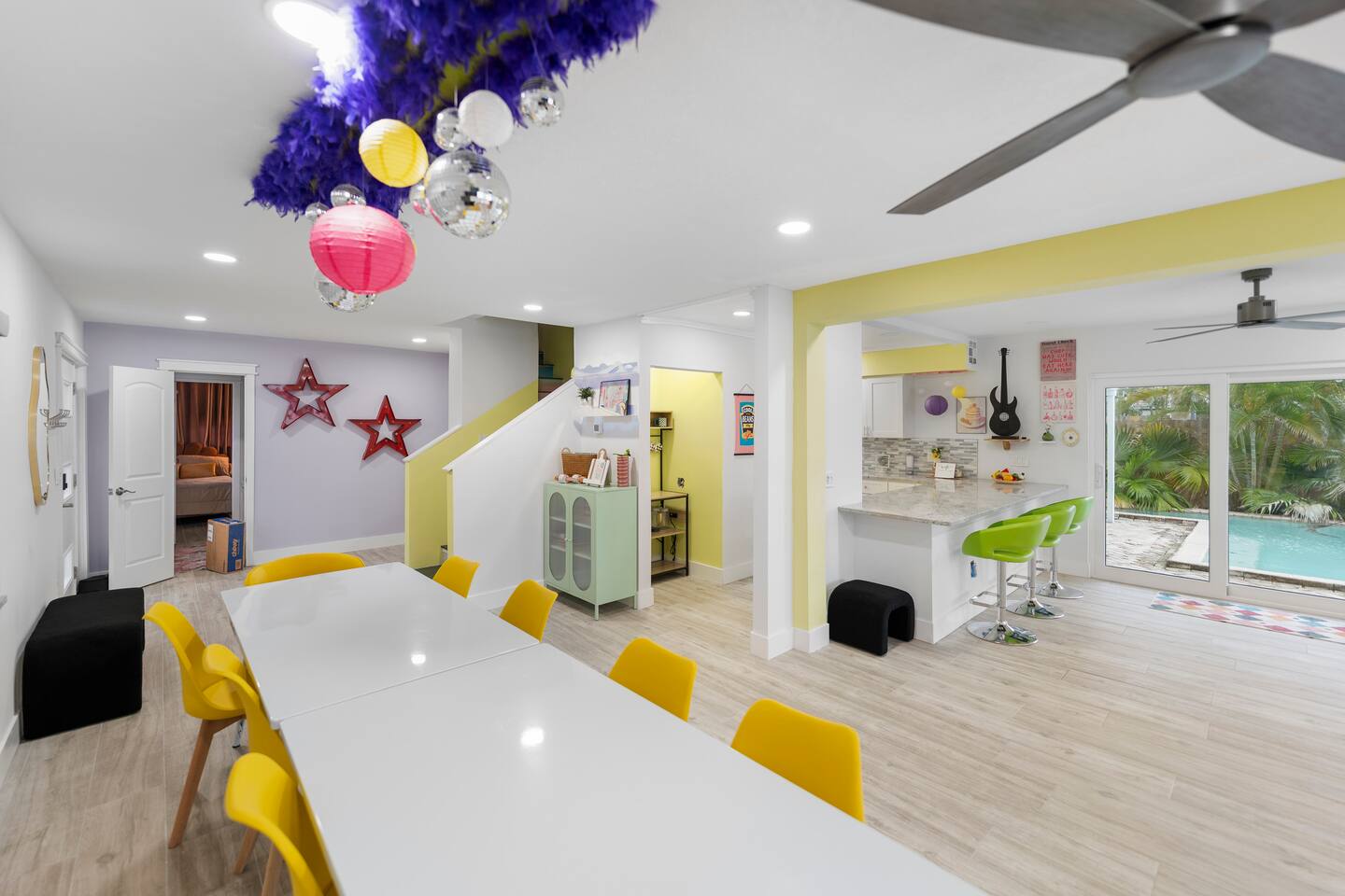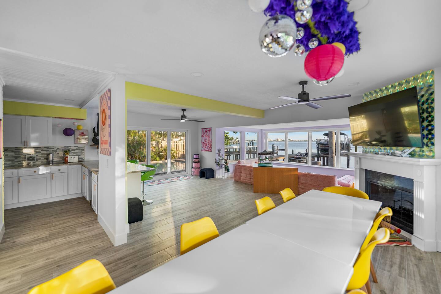 Pink Pony Villa is a private waterfront home designed for groups who want space to gather, celebrate, and enjoy being together — without sacrificing comfort. Outdoor highlights: - Private pool and hot tub* - Waterfront access with kayaks - Fishing poles for guest use - Outdoor dining area and poolside seating - Coolers provided for drinks and snacks Inside the home: - Multiple bedrooms with comfortable beds and fresh linens - Full bathrooms stocked with linens - A fully equipped kitchen for group meals and casual bites - A stocked coffee bar - Open living and dining areas made for hanging out - Smart TVs throughout - Games for group entertainment - A dedicated projector room for movie or karaoke nights - A selfie booth and a recording-studio-style closet, ideal for photos and creative fun Whether you’re spending the day on the water or enjoying time together inside, Pink Pony Villa is set up to match your pace — relaxed, upbeat, and full of good energy. *Hot tub available at an additional fee.
