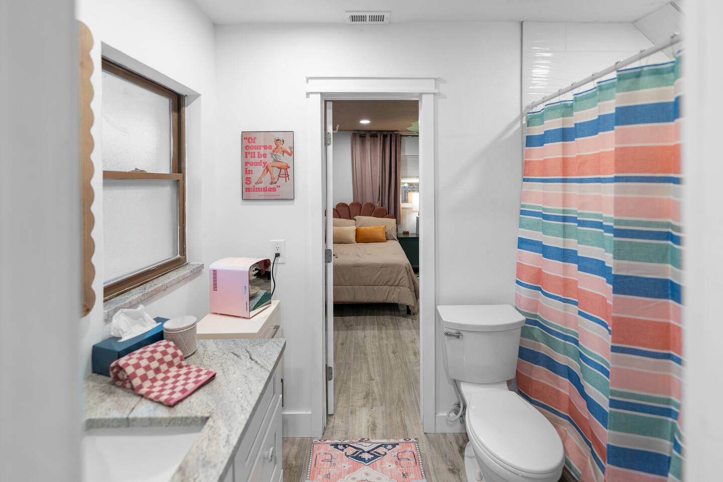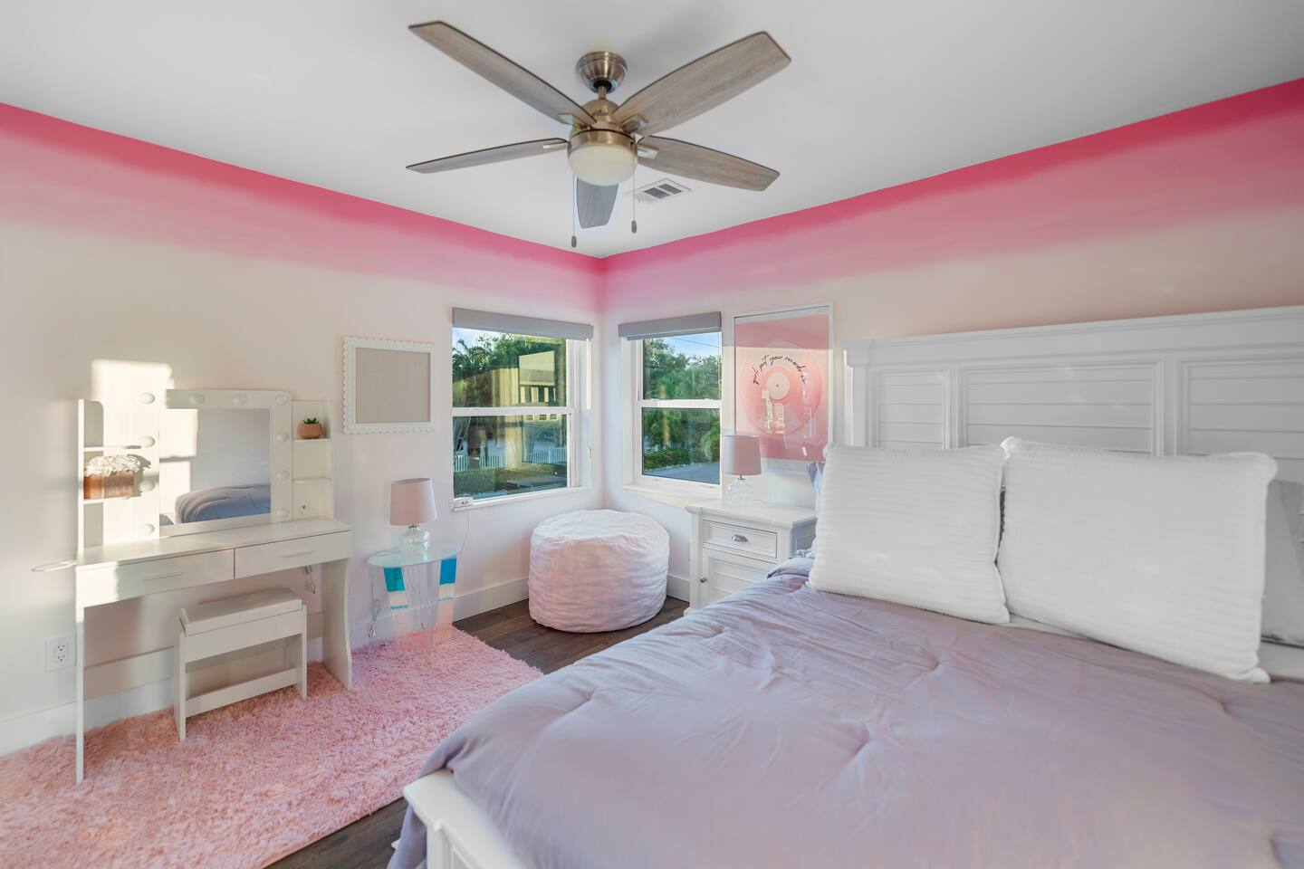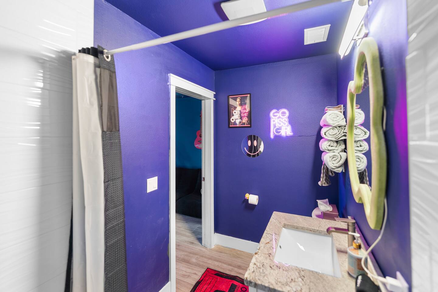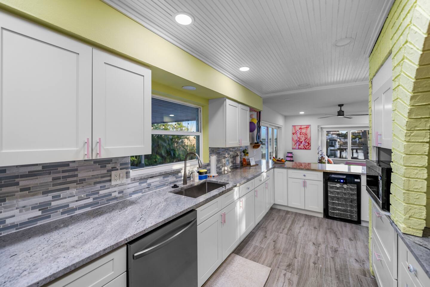 Pink Pony Villa is a private waterfront home designed for groups who want space to gather, celebrate, and enjoy being together — without sacrificing comfort. Outdoor highlights: - Private pool and hot tub* - Waterfront access with kayaks - Fishing poles for guest use - Outdoor dining area and poolside seating - Coolers provided for drinks and snacks Inside the home: - Multiple bedrooms with comfortable beds and fresh linens - Full bathrooms stocked with linens - A fully equipped kitchen for group meals and casual bites - A stocked coffee bar - Open living and dining areas made for hanging out - Smart TVs throughout - Games for group entertainment - A dedicated projector room for movie or karaoke nights - A selfie booth and a recording-studio-style closet, ideal for photos and creative fun Whether you’re spending the day on the water or enjoying time together inside, Pink Pony Villa is set up to match your pace — relaxed, upbeat, and full of good energy. *Hot tub available at an additional fee.
