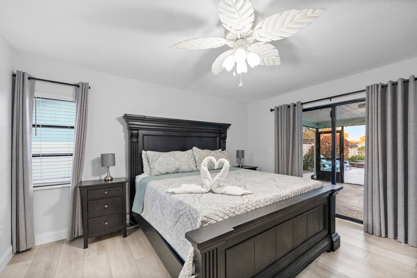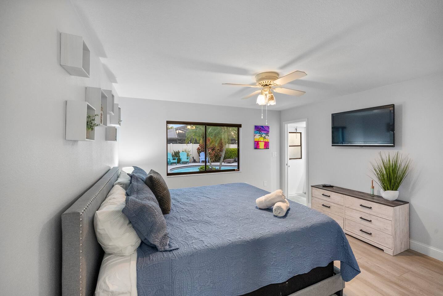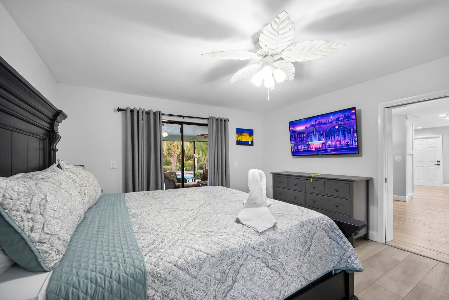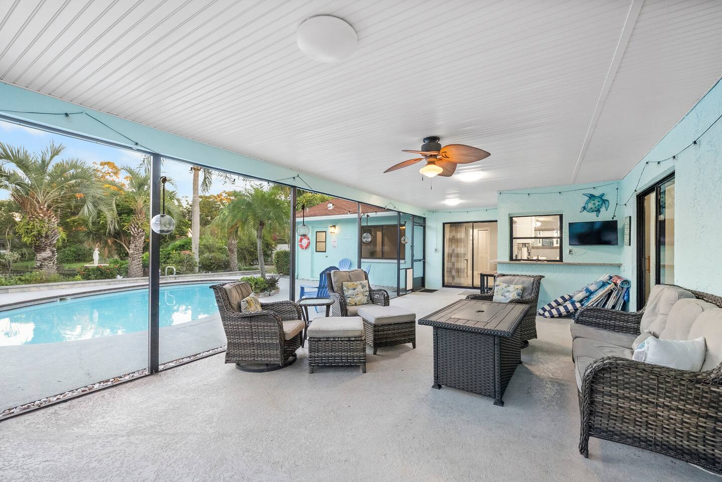 - Two master suites with king beds overlooking the pool - Third bedroom with a queen bed - Fourth bedroom with two twin beds (includes a trundle)
