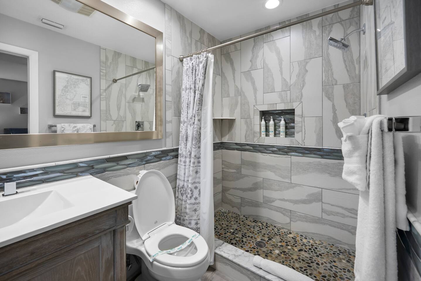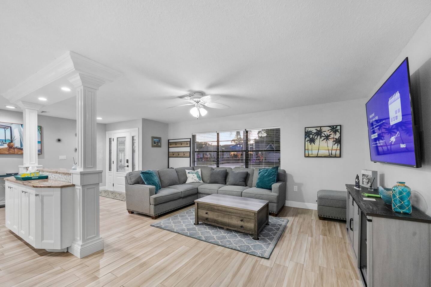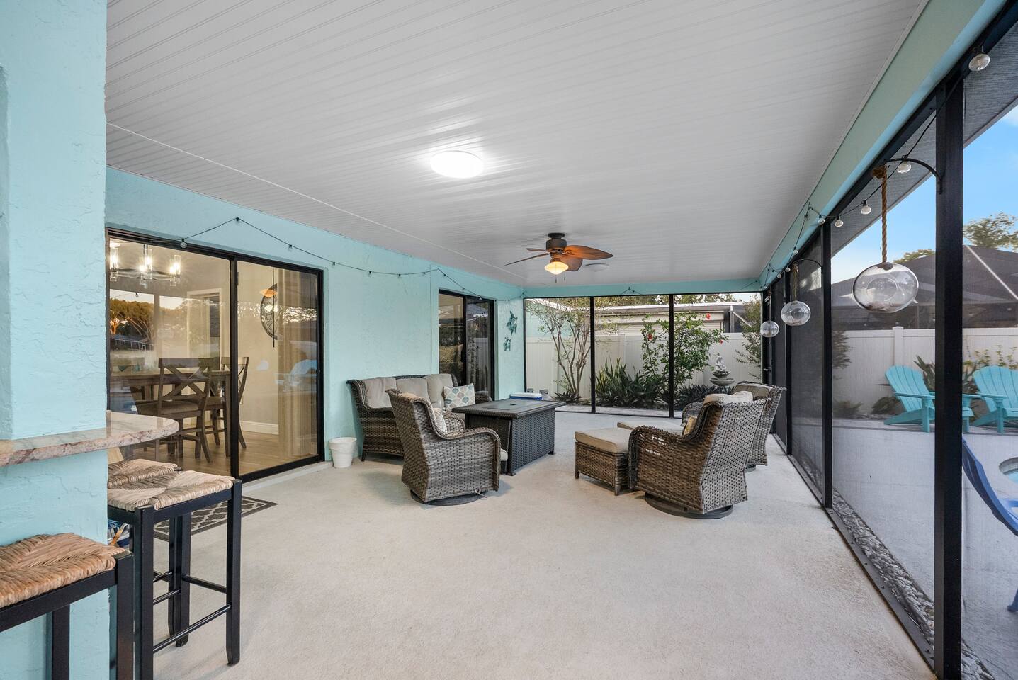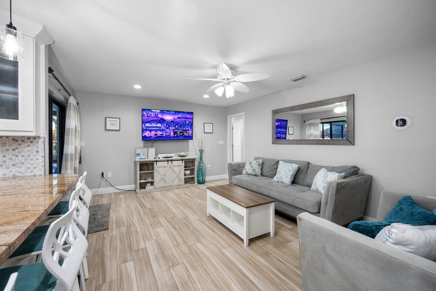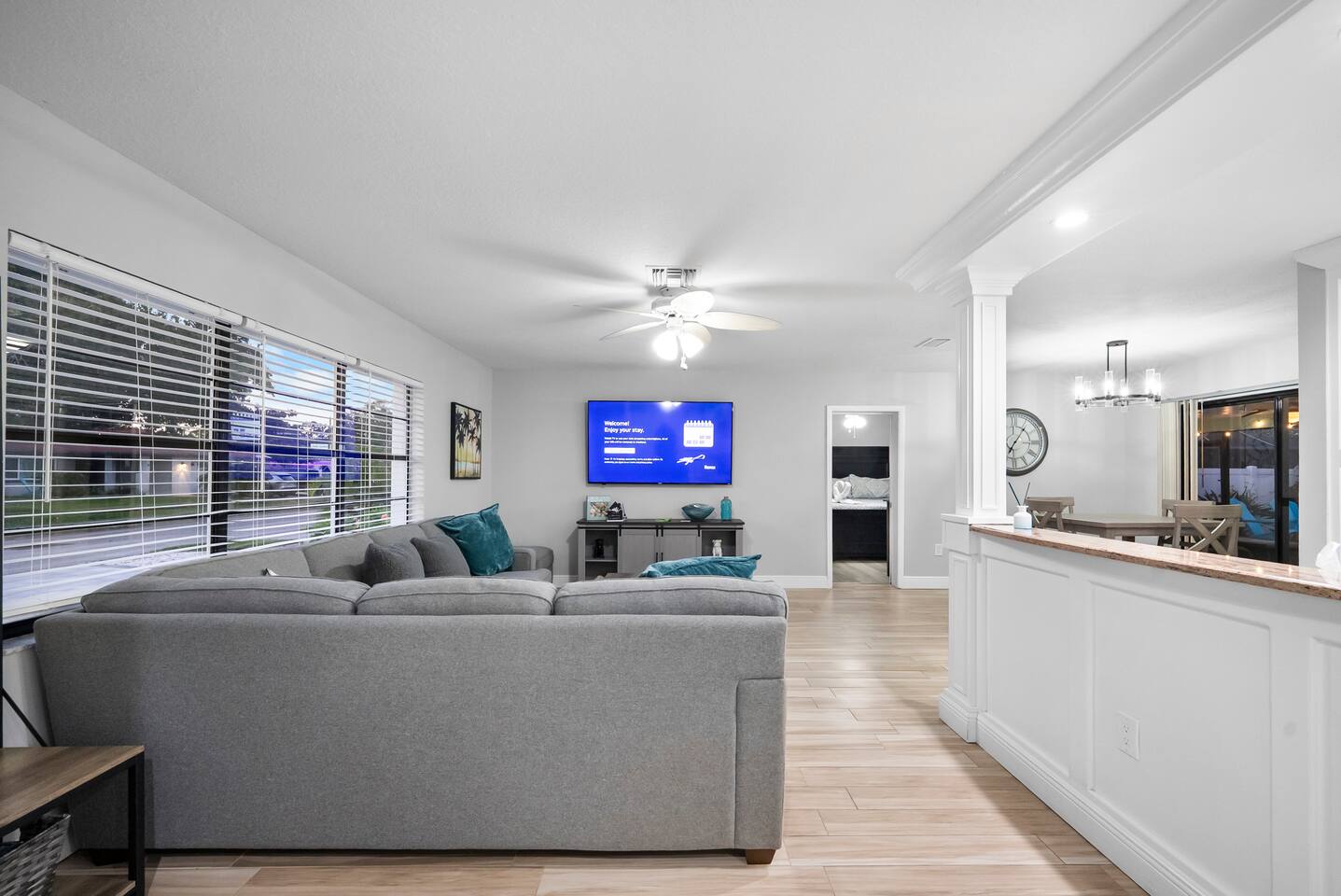 Discover your perfect Florida getaway at this beautiful waterfront retreat in sunny Seminole, where relaxation meets modern coastal living. Designed for comfort and connection, this single-level 4BR, 3BA home blends open spaces, stylish décor, and seamless indoor-outdoor living. Step inside to find an inviting coastal vibe with two spacious living rooms, a fully equipped kitchen with granite countertops and stainless appliances, and Roku smart TVs in every bedroom. Central A/C and fast WiFi keep everyone cool and connected throughout your stay. Outdoors, your private paradise awaits — a sparkling pool, screened-in patio, and tranquil waterfront views surrounded by tropical landscaping. Fire up the propane grill for alfresco dining, unwind with evening cocktails by the water, or soak up the sun on the pool deck. Two spacious suites offer private retreats, including a primary ensuite with a spa-style shower. The thoughtful split floor plan makes it easy for families and groups to spread out and relax after a day of adventure. You’ll be just 10 minutes from Indian Rocks Beach, close to local favorites like the Pinellas Trail, Florida Botanical Gardens, and some of Tampa Bay’s best dining and attractions. With plenty of parking (including room for a boat) and a peaceful neighborhood setting, this home is the perfect blend of comfort, convenience, and coastal charm. Things to Know: Laundry Access Notice: The washer and dryer are located in the garage, which is a separate area from the main living space and secured with a smart lock. Guests may request access to the laundry during their stay. Please note that the garage contains exterior security cameras to monitor stored personal items only. There are no cameras inside the living areas of the home. Up to two dogs are welcome (no other pets without prior approval). Please note: Pool is not heated and water temperature may vary seasonally. The home is located in a quiet, residential area — please respect neighborhood noise guidelines during your stay. Your unforgettable Gulf Coast escape starts here — book your stay and experience Seminole at its best.